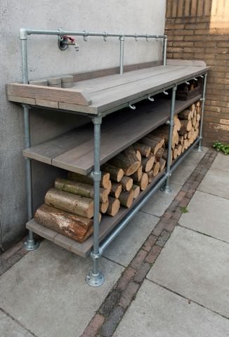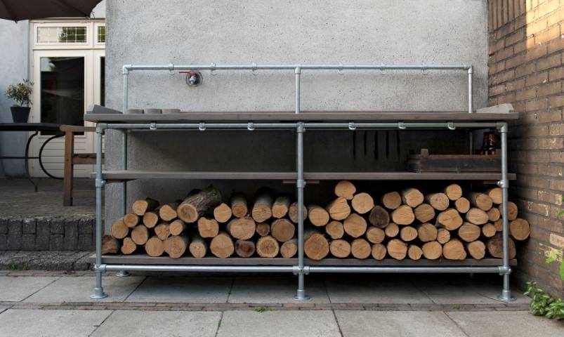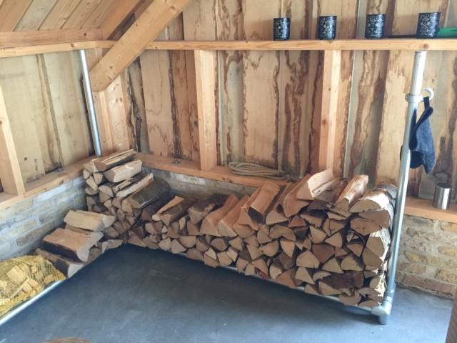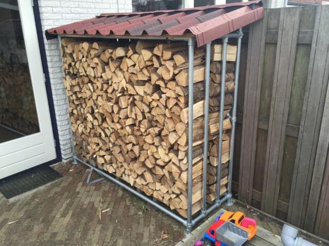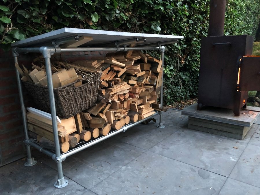 Haben Sie einen Kamin, Feuerkorb oder Holzofen im Garten oder zu Hause? Dann wissen Sie besser als jeder andere, dass das Brennholz trocken bleiben muss. Mit Rohren und Rohrverbindern können Sie ganz einfach ein Holzlager / Träger bauen. Stark und robust und widerstandsfähig gegen die Elemente. Außerdem sehen Holzstämme in dieser Lagerung toll aus!