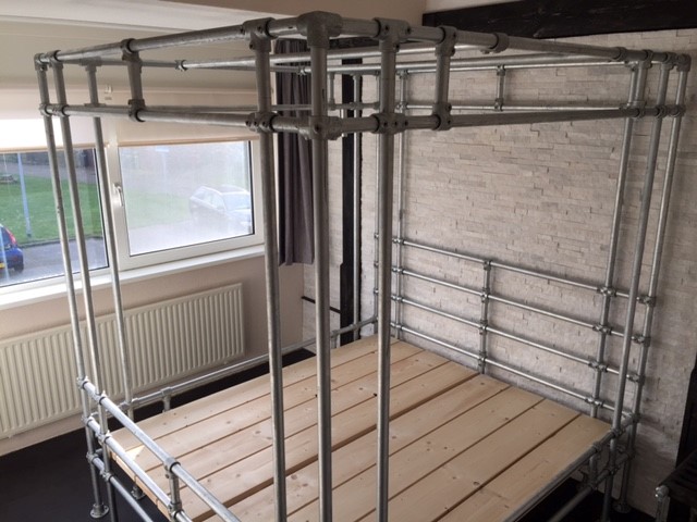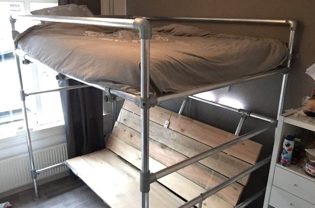 Rohr, Rohrverbinder und Gerüstholz sind heutzutage sehr beliebt. Bei Moduworx gibt es viele Inspirationen, um Ihre eigene Kreationen zu kreieren. Mit unseren Bettgestellbausätzen können Sie einen stabilen Rahmen für Ihre Matratze schaffen. Diese langlebige und äußerst stabile Konstruktion lässt sich bei einem Umzug einfach auseinander und wieder zusammenbauen. Sie benötigen hierfür lediglich einen Inbusschlüssel. Sie können auch mit Gerüstrohren und Rohrkupplungen in Ihrem Badezimmer arbeiten. Alles einfach zusammenbauen und bestellen.