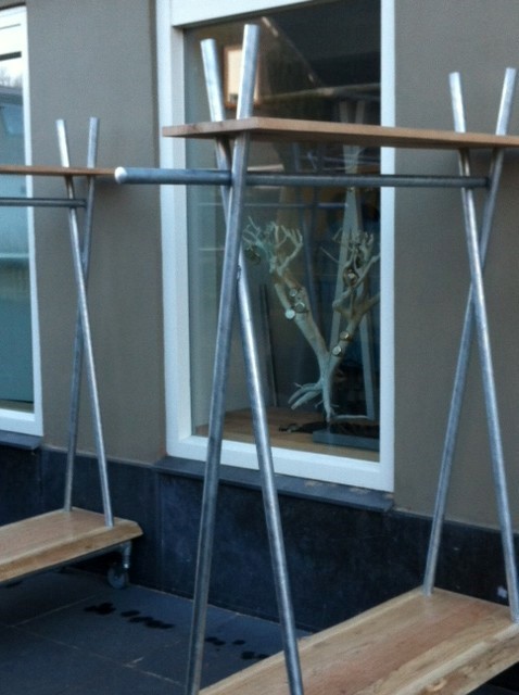 Durch den Einsatz von Rohrverbindern können die Kleiderständer optimal an vorhandene Regale oder weitere Ladeneinrichtung angepasst werden und fügen sich optimal ein. Die Kleiderständer können in der Abmessung immer so gewählt werden, dass sie sich optimal an die Möglichkeiten anpassen. Kleiderstangen können wahlweise an der Wand oder an der Decke befestigt werden.