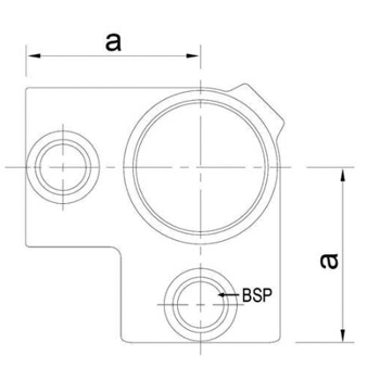 Deze koppeling wordt vaak in combinatie met type 128 gebruikt, onder andere om een 90° hoekverbinding voor de tussenreling van een relingwerk te maken. De verticale buis gaat ononderbroken door de koppeling. Diameter 21,3mm.