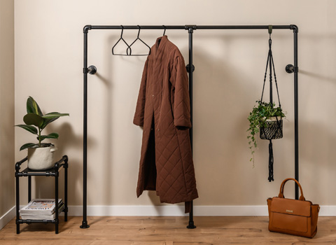Ideal zum Selberbauen von trendigen Möbeln aus Stahlrohren. Mit unseren schwarzen Rohrverbindern können Sie problemlos starke Konstruktionen in Kombination mit schwarzen Rohren herstellen. Denken Sie an Möbel, Regale, Messestände, Bannerrahmen und Kleiderständer.