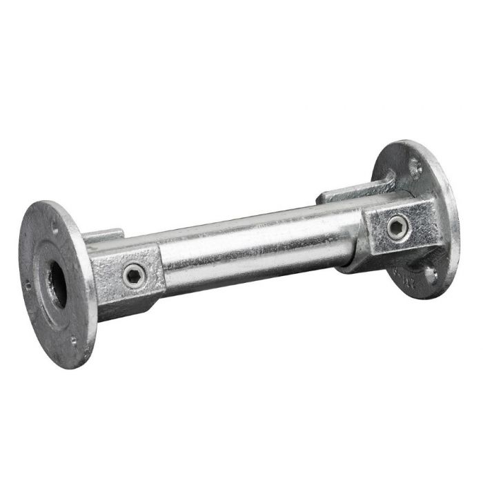 Uniek koppeling! Ideaal voor het gebruik als gordijnroede of voor beveiligingsdoeleinden waarbij de buis demontabel moet zijn. Deze flens met 3 bevestigingsgaten kan worden toegepast voor bevestigingen van constructies en wordt veelvuldig gebruikt als een muurbevestigingsflens.